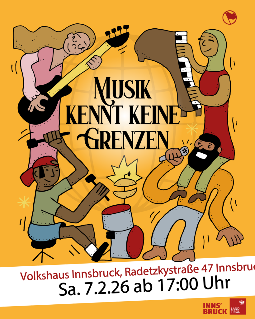 Herzliche Einladung zum Fest „Musik kennt keine Grenzen“. Das Fest findet im Anschluss an die Grenzen Töten Demonstration statt. Wir freuen uns auf euer zahlreiches Erscheinen.